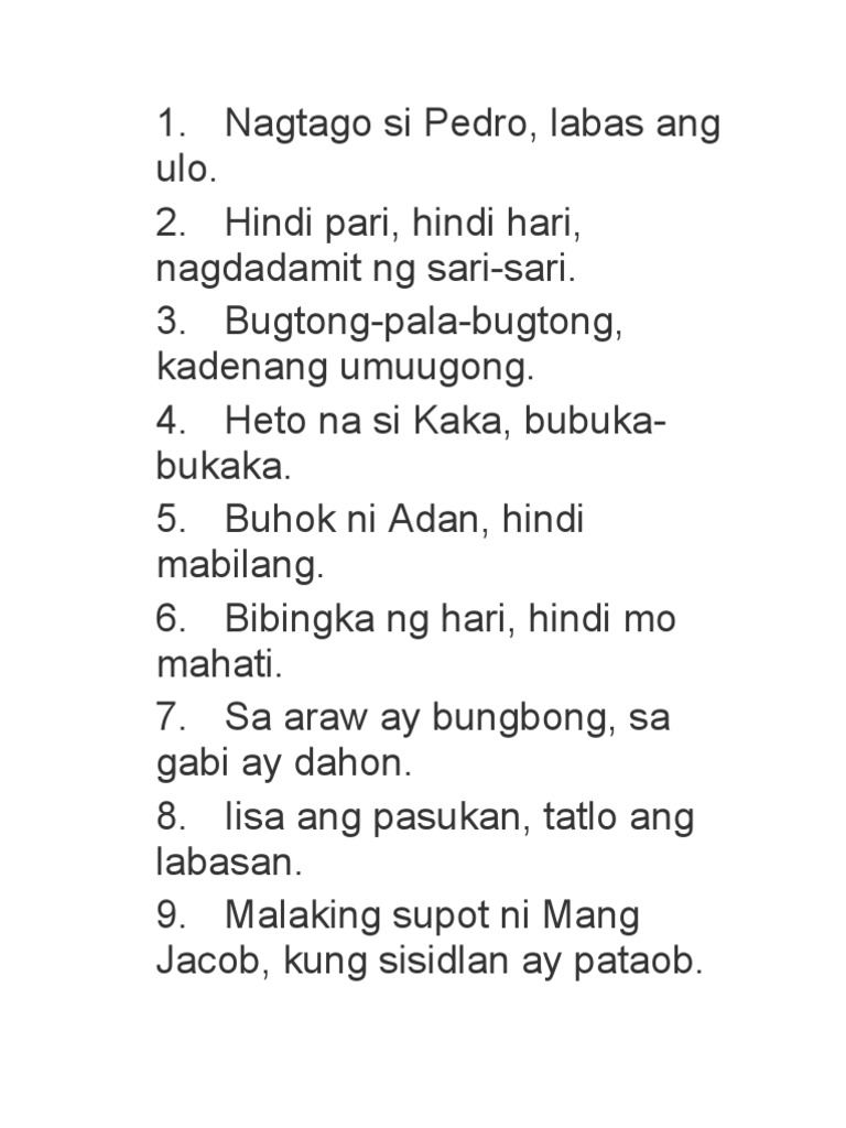 Ulan Isang bayabas pito ang butas. Ulo ng tao Aling hayop sa mundo ang lumalakad ay walang buto. This website is dedicated to all Filipino people who love their country the Philippines.