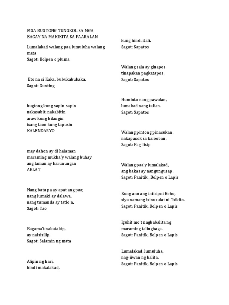 View bugtong-at-sagotdocx from FILIPINO 201 at Bulacan State University Hagonoy Campus.